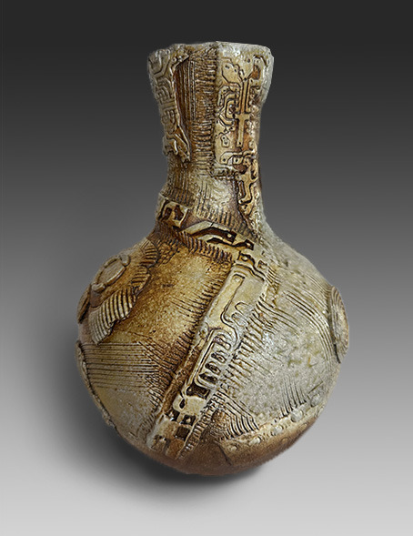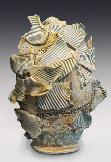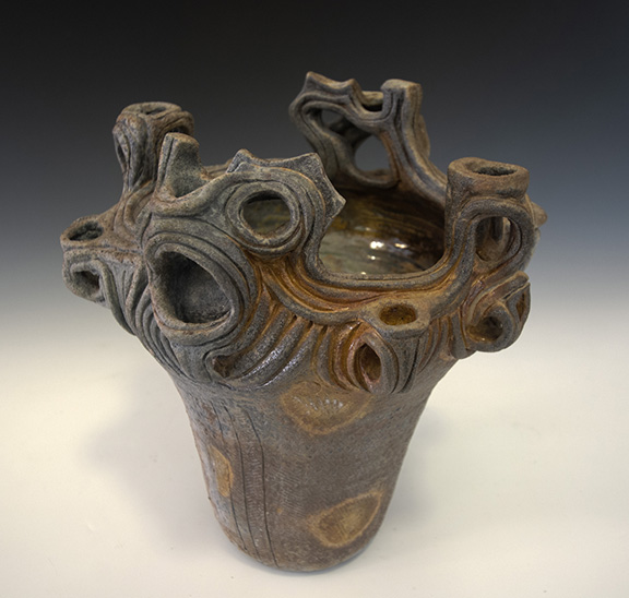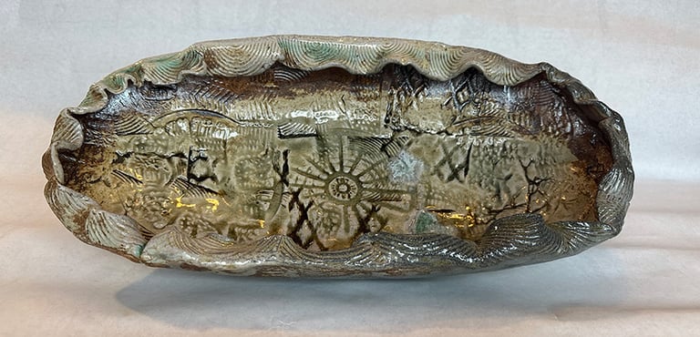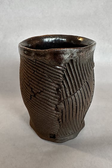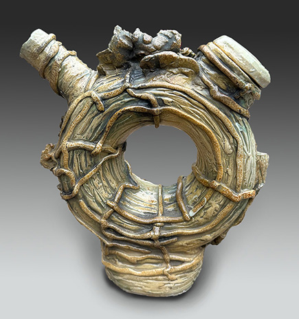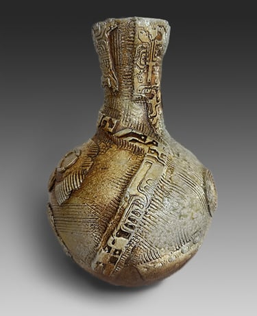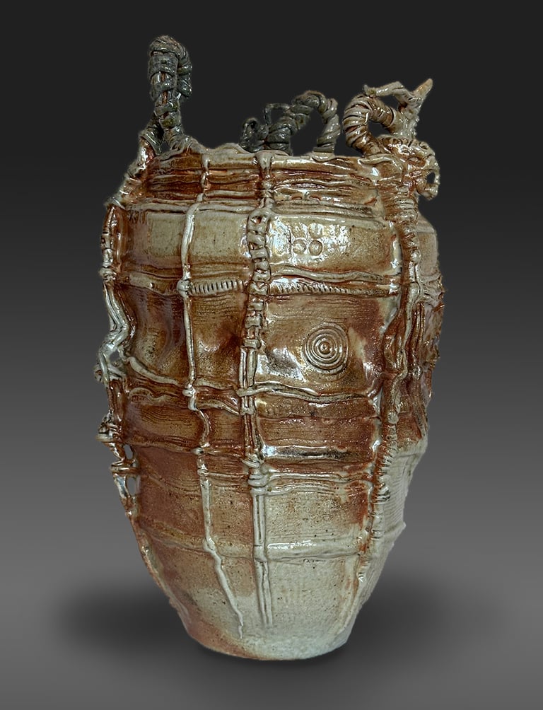 I have a longstanding attraction to vessel forms, such as ancient pottery and natural containers like broken pods and shells. The interiors captivate me. I started creating sculptural vessels featuring raised copper and enameled designs. A significant portion of my work reflects the Japanese aesthetic of “Wabi-sabi,” which embraces the idea that life is both imperfect and transient. My recent projects integrate wood and soda firing techniques. I remain passionate about and incorporate these aesthetic principles in my clay work. The atmosphere created by wood and soda firing, in my opinion, enriches the sense of history and age.